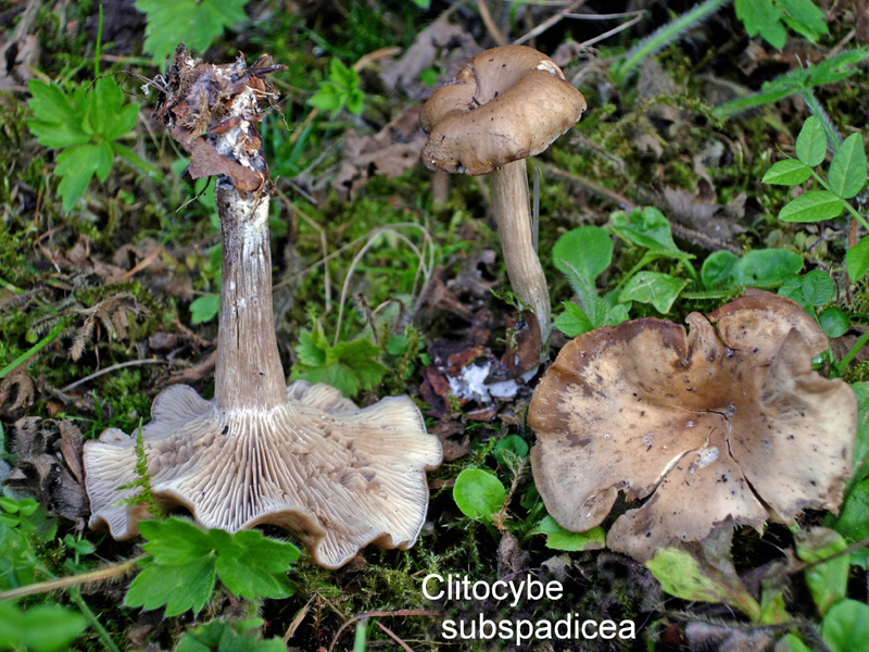 => Clitocybe subspadicea ; Syn1: Gerronema subspadiceum ; Syn2: Clitocybe umbilicata var.subspadicea ; Nom français: Clitocybe à ceinture blanche